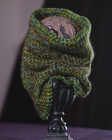 If you like the greens of underwater fish and coral then you might wanna consider this beautiful Nekker. I have joined a strand of Peruvian alpaca tweed with a strand of handpainted merino/silk and a thin strand of handpainted ultrafine merino. Stunning partners in this fabric that constantly modulates through a panoply of greens and subtle greys and browns. It's thick and super soft and perfect for the sensitive skin of your neck.